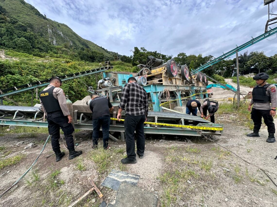 Personil juga mengamankan dua orang karyawan penjaga mesin pemecah batu yang ditemukan di lokasi dengan inisial MG (39) dan BS (33).