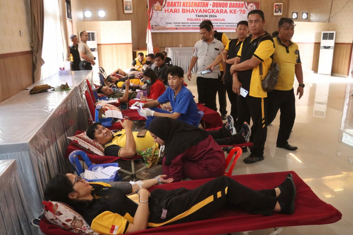 Donor darah ini diselenggarakan dengan kerjasama antara Dokkes Polres Simalungun, Dinkes, dan PMI Kabupaten Simalungun. Kegiatan ini merupakan bagian dari tema HUT Polri ke-78, yaitu “Polri Presisi Mendukung Percepatan Transformasi Ekonomi yang Inklusif dan Berkelanjutan menuju Indonesia Emas”.