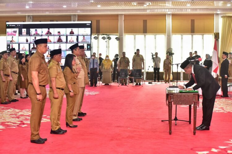 PERCEPAT pencapaian visi dan misi Gubernur Sumatera Utara (Sumut), Edy Rahmayadi melantik 911 pejabat eselon III dan IV lingkup Pemerintah Provinsi (Pemprov) Sumut, Selasa (21/02/2023). Pelantikan ini juga bertujuan untuk menyelaraskan kinerja Aparatur Sipil Negara (ASN) di Pemprov Sumut.