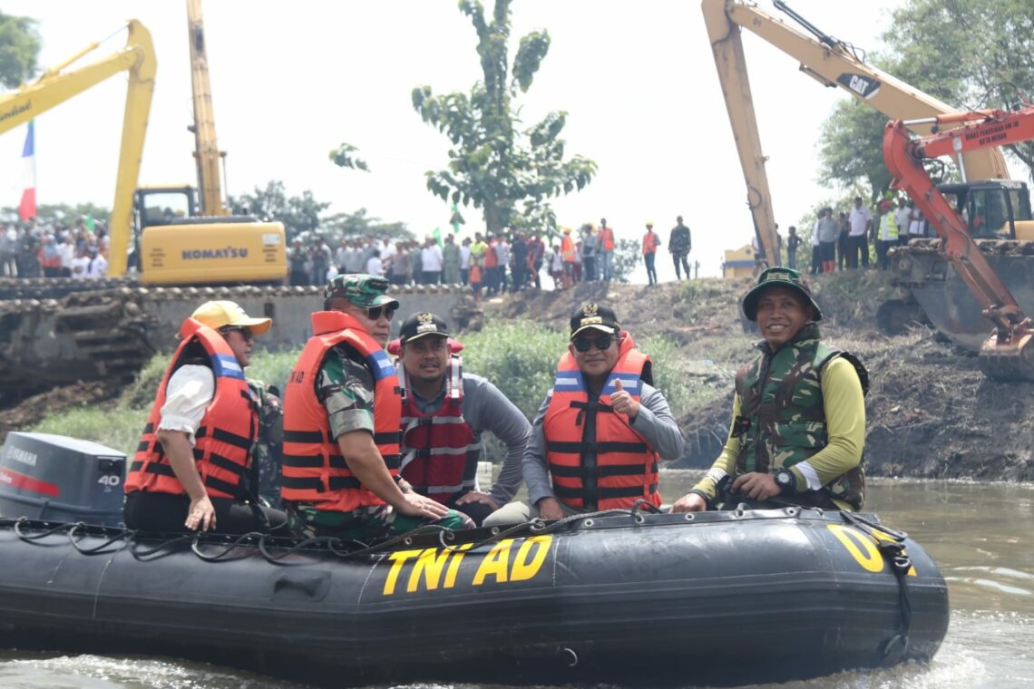Pj Gubernur bersama KASAD Dudung Abdurachman turun ke sungai dengan menaiki perahu karet. Sembari melihat dari dekat upaya pembersihan Sungai Deli sepanjang 34,5 km, yang melibatkan 2.303 personel dan menggunakan sejumlah alat berat.