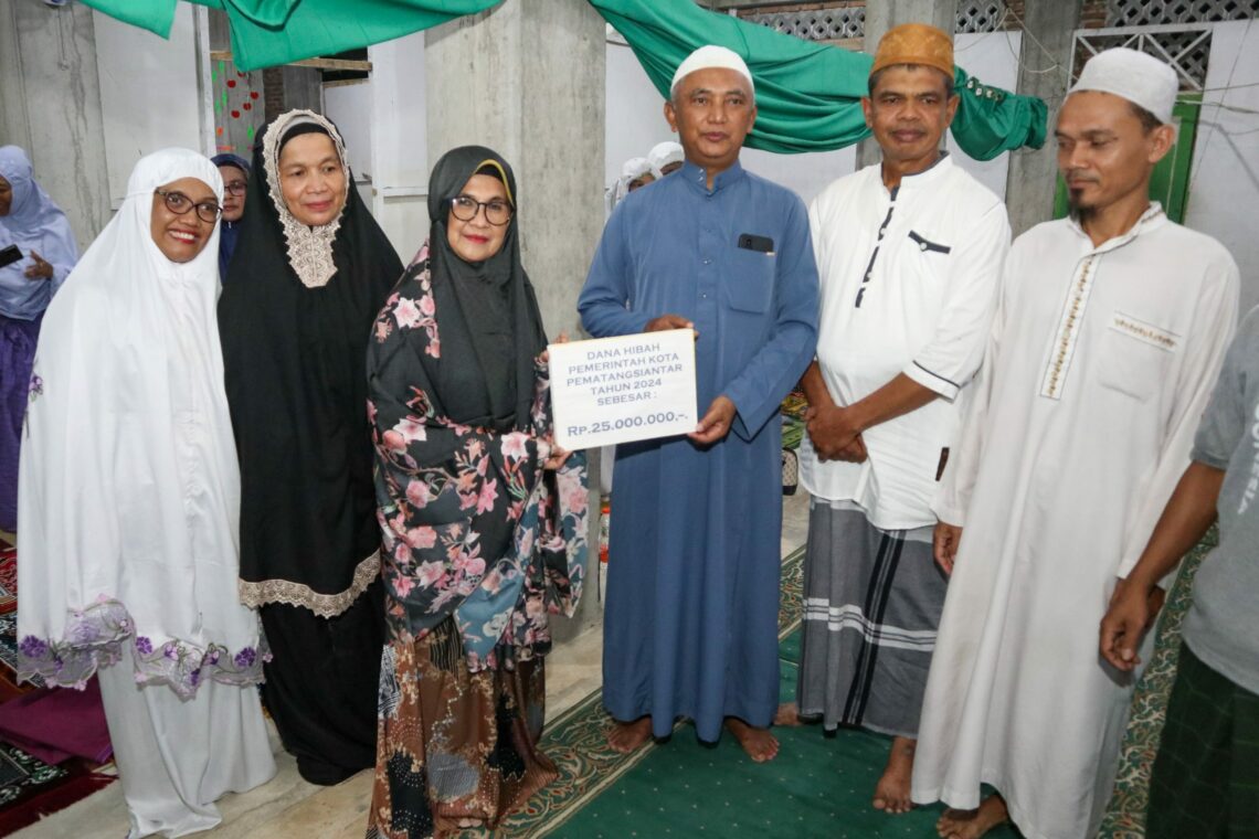 Dalam kunjungannya, Susanti menyerahkan bantuan hibah Rp25 juta dari Pemerintah Kota (Pemko) Pematangsiantar untuk penyelesaian pembangunan Masjid Al-Falah dan bantuan kepada kaum dhuafa.