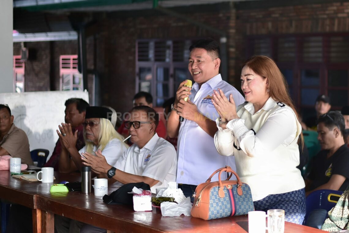Mangatas Silalahi, didampingi istrinya, menyampaikan rasa terima kasih atas dukungan dari keluarga besar Pomparan Si Raja Oloan.