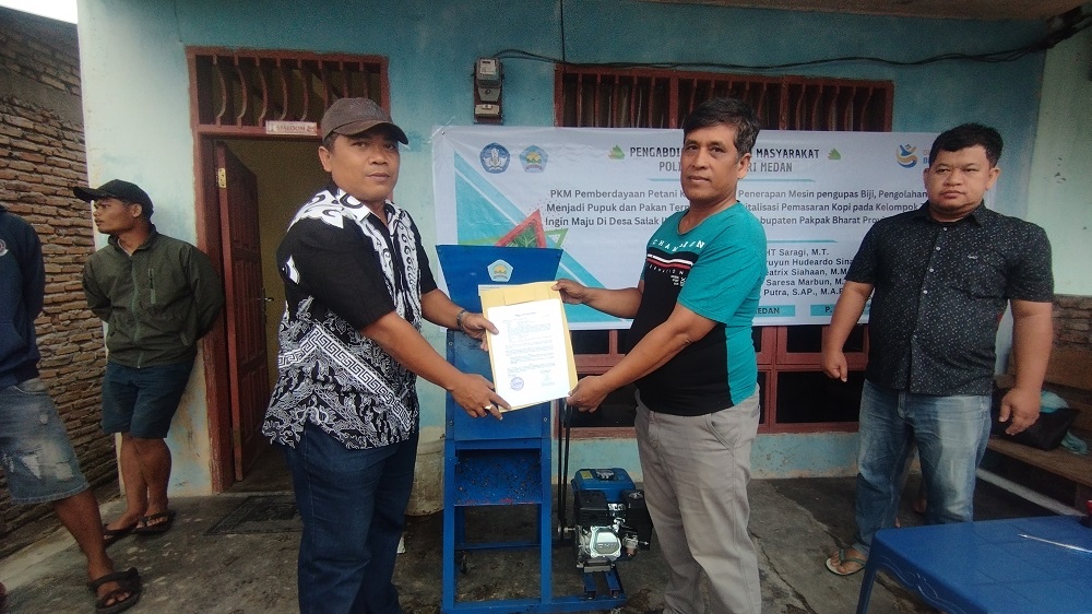 “Kami sangat berterima kasih kepada Tim Pengabdian Polmed yang sudah datang ke desa kami. Mesin pengupas kopi ini sangat membantu pekerjaan kami, pengolahan limbah menjadi pupuk dan pakan ternak juga membuka wawasan baru bagi kami, dan dengan pelatihan pemasaran digital, kami jadi percaya diri untuk memasarkan kopi kami lebih luas. Semoga kerja sama ini terus berlanjut demi kemajuan petani kopi di Salak II,” ujar Elijonson.