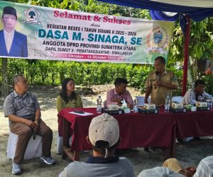 SIMALUNGUN – SEGARIS.CO – MASYARAKAT Huta (Dusun) Janji Matoguh menyampaikan aspirasi terkait perbaikan jalan, irigasi dan pengadaan lampu tenaga surya penerangan jalan kepada anggota DPRD Provinsi Sumatera Utara dari Fraksi Partai Golkar, Dasa M Sinaga SE yang menggelar kegiatan Reses I Tahun Sidang II 2025-2026 di Huta Janji Matoguh, Nagori (Desa) Laras II, Kecamatan Siantar, Kabupaten Simalungun, Rabu (08/10/2025).