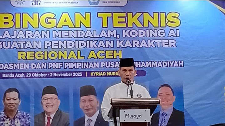 Hal tersebut disampaikannya dalam sambutan pembukaan Bimbingan Teknis (Bimtek) Guru Muhammadiyah se-Aceh di Hotel Kyriad Muraya Banda Aceh, Rabu (29/10/2025).