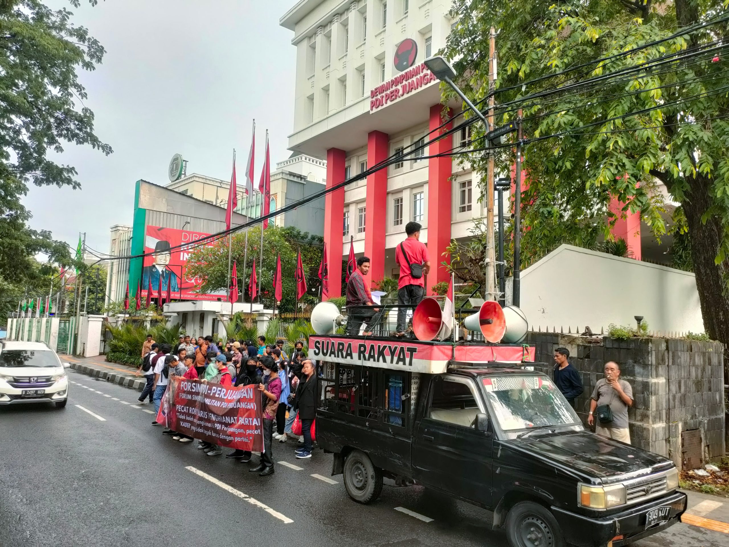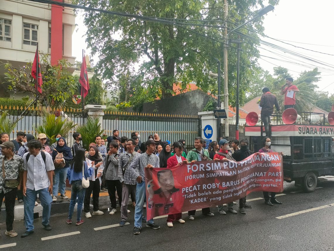 Mereka rnenggelar aksi di kantor DPP PDI-P, Jumat (14/11/2025) dan meminta agar Roby diberhentikan dari keanggotaan partai, jabatan Sekretaris DPC PDI Perjuangan Kota Medan, serta posisinya sebagai Anggota DPRD Kota Medan.