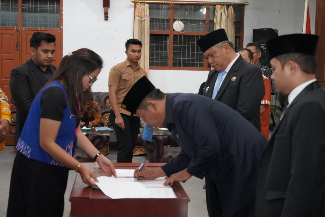 Usai pemaparan, pihak eksekutif dan legislatif menandatangani Berita Acara Persetujuan Bersama, masing-masing bernomor 20/KSB/TU/XI/2025 dan 18/PB/DPRD-TU/XI/2025.