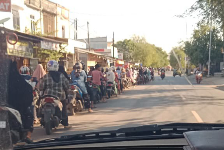 Kondisi serupa juga terlihat di Pertashop Pekan Bada, bahkan antrean sepeda motor mencapai ratusan meter hingga mendekati gerbang MIN 7 Pekan Bada.