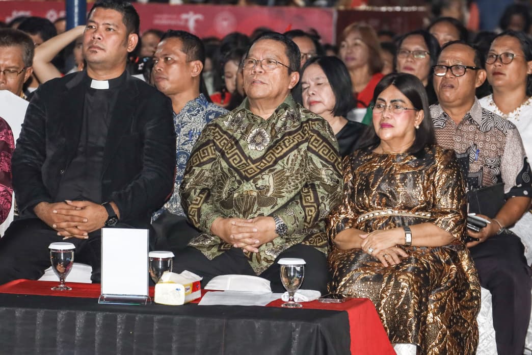 PEMATANGSIANTAR — SEGARIS.CO — WALI KOTA Pematangsiantar Wesly Silalahi bersama Ketua TP PKK Liswati Wesly Silalahi menghadiri perhelatan Bagak Marnatal Tahun 2025 yang digelar di Lapangan SMA YP HKBP, Jalan Gereja, Kelurahan Kristen, Kecamatan Siantar Selatan, Sabtu (13/12/2025).