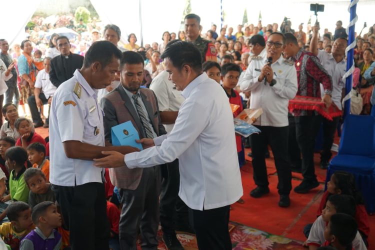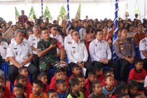 Pada kesempatan tersebut, Bupati Tapanuli Utara bersama perwakilan Kemenkopolkam Kombes Pol Ferio Sano Ginting menyerahkan bantuan dari Kemenkopolkam dan KemenPPPA kepada warga terdampak bencana.