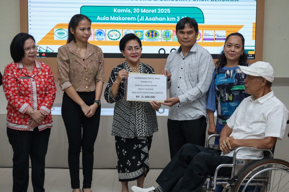 Pemko Pematangsiantar juga menunjukkan kepeduliannya dengan menyerahkan lima kursi roda secara simbolis kepada anak-anak penyandang disabilitas.