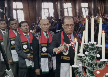 PEMATANGSIANTAR — SEGARIS.CO — WALI KOTA Pematangsiantar Wesly Silalahi bersama Ketua TP PKK Liswati Wesly Silalahi menghadiri perhelatan Bagak Marnatal Tahun 2025 yang digelar di Lapangan SMA YP HKBP, Jalan Gereja, Kelurahan Kristen, Kecamatan Siantar Selatan, Sabtu (13/12/2025).